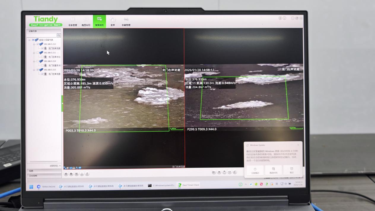 李超华:2025年7月,都是新的。它替代了浮标,老早以前高洪水的时候需要用浮漂来进行测验,浮漂比较原始,有时候捕捉不到。视频影像测流实时捕捉水面流速的像素点,就把水面流速测出来了,配合铅鱼实测断面得出一份完整的断面流量。
